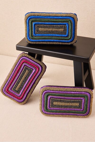 79,95€ IVA incluidoEspectacular Clutch joya todo bordado a mano en un diseño de geometrías, que lo convierten en una pieza única. Su estructura compacta y su acabado artesanal lo convierten en un complemento especial para eventos y celebraciones.
