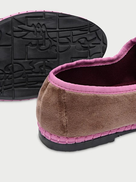 89,00€ IVA incluidoSlippers de terciopelo en color marrón claro con ribete rosa claro.