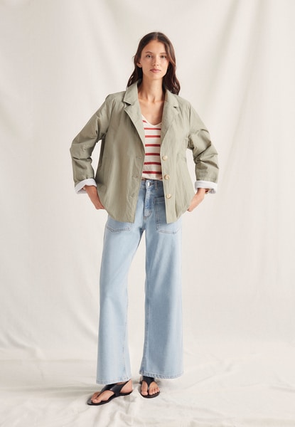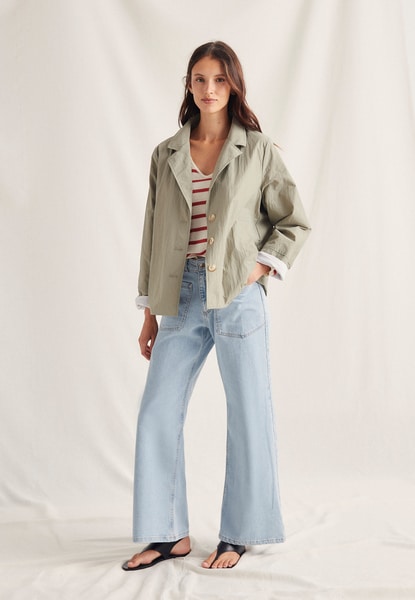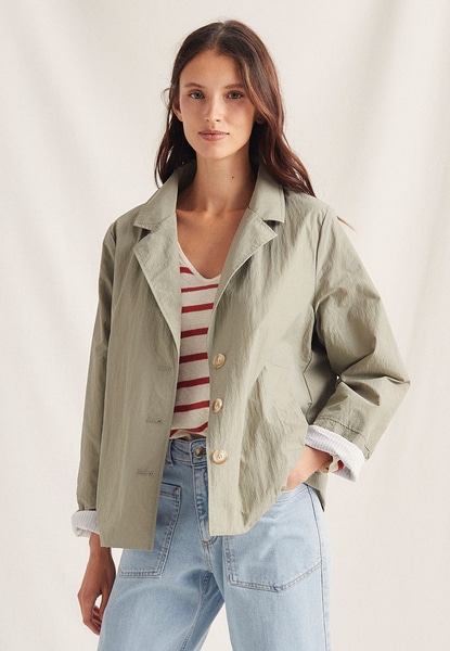 Chaqueta acolchada de nylon en precioso color verde. Una prenda muy ligera y versátil que no te quitarás esta primavera.